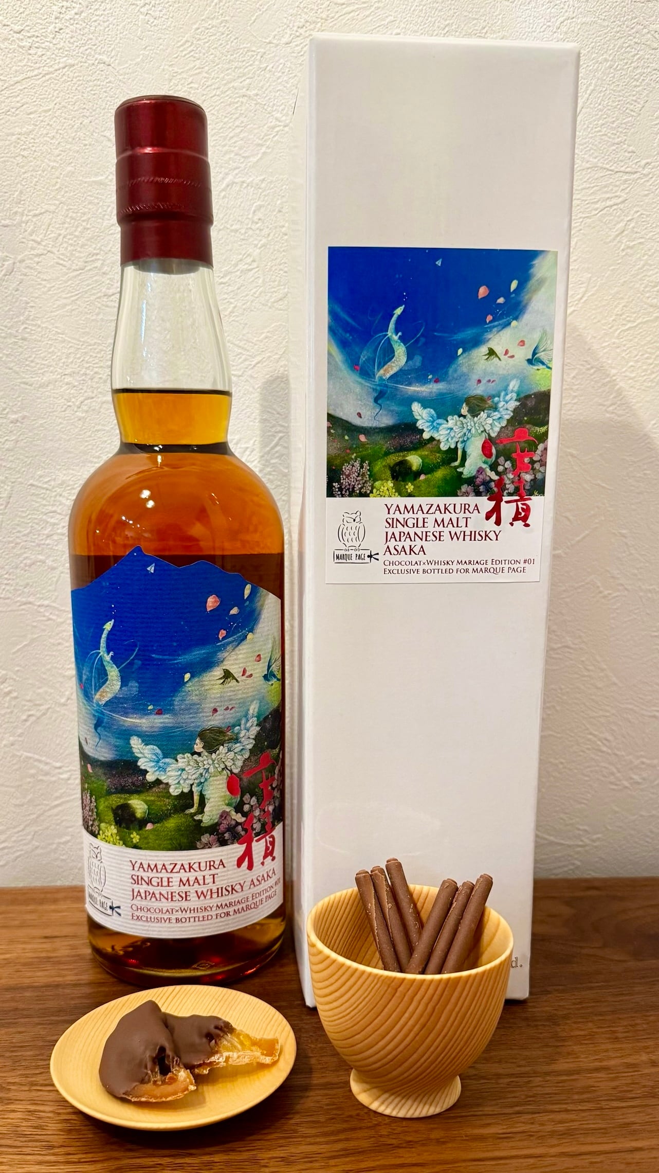 その第1弾としてかねてよりお世話になっている安積蒸溜所様に、特別なワイン樽原酒をキーモルトにピーテッド原酒などを複数ブレンドした、ショコラとのマリアージュに特化したウイスキーをボトリングしていただきました。