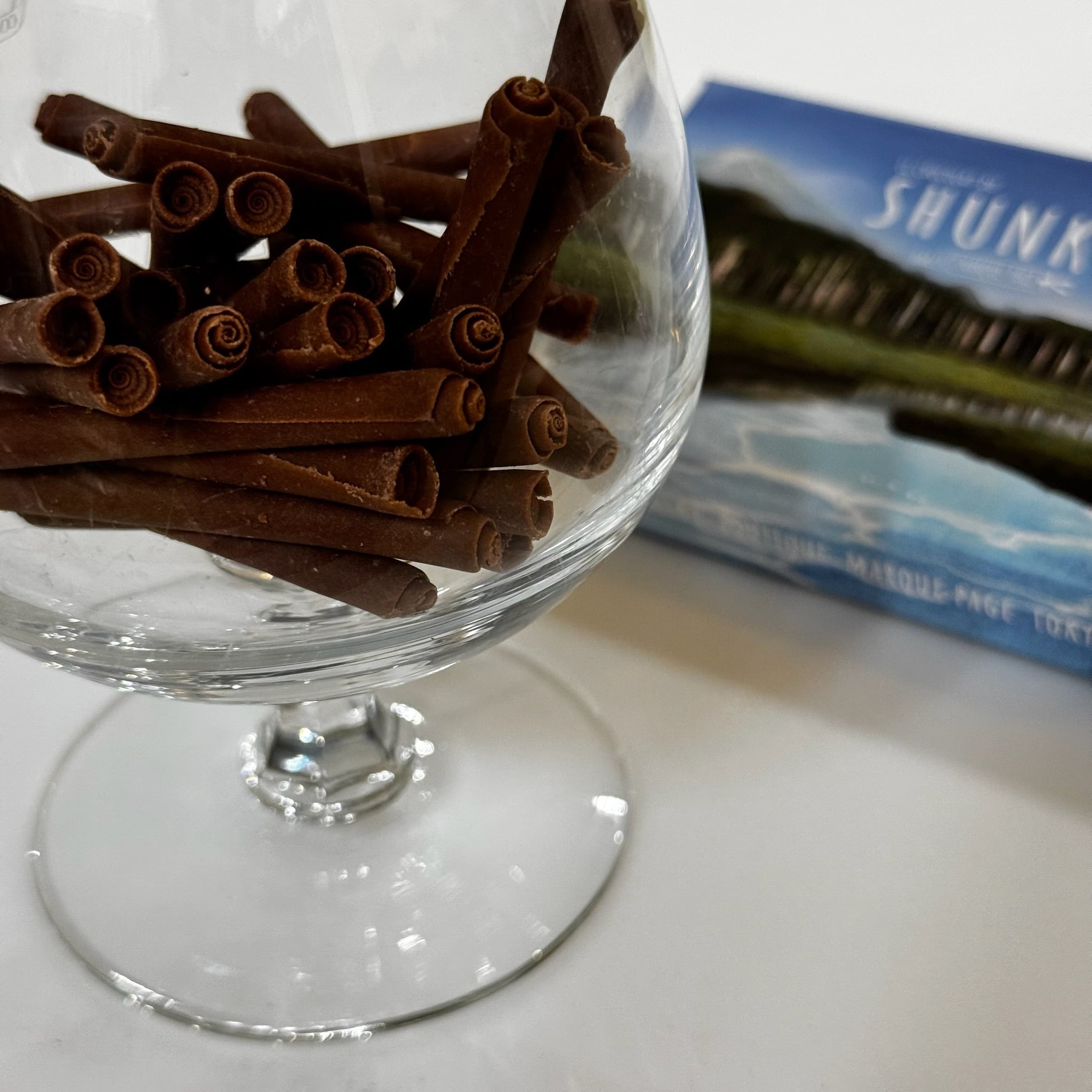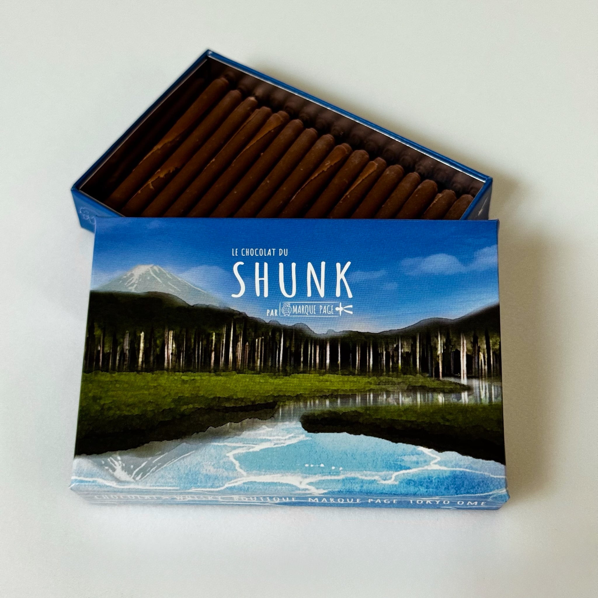 MARQUE PAGE オリジナルのペルー産カカオをブレンドしたミルクチョコレートを、特殊技術により厚さ0.5mmの薄さでロール状に巻き付けた形状は、表面積が大きいために非常に滑らかで心地の良い口溶けを表現します